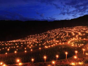 古き良き里山文化の象徴である棚田にエコキャンドルと照明、さらに夜空の星と、幻想的な景色が人間らしさ感じさせてくれる不思議な感覚を体感下さい。