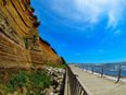 海抜40~50m海岸の絶壁は10km続く地層を遊歩道から見学できる。